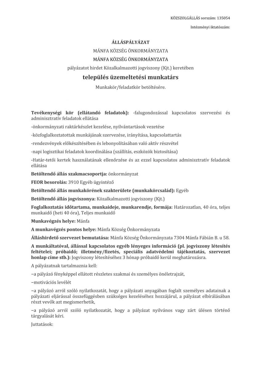 Mánfa Község Önkormányzata 2016 | Készítette: